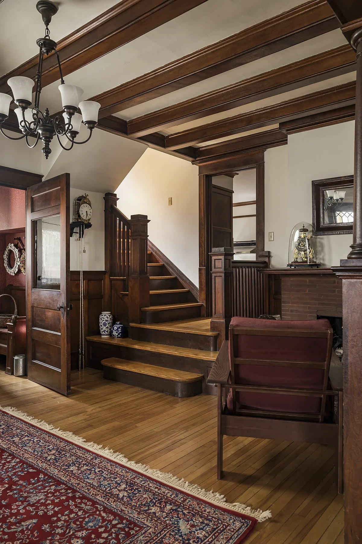 Built in 1905 by an architect for his own family, this beautiful American Foursquare features classic details with modern updates such as a main-floor family room addition, a primary bedroom suite, mini-split air conditioning, and zoned heating.