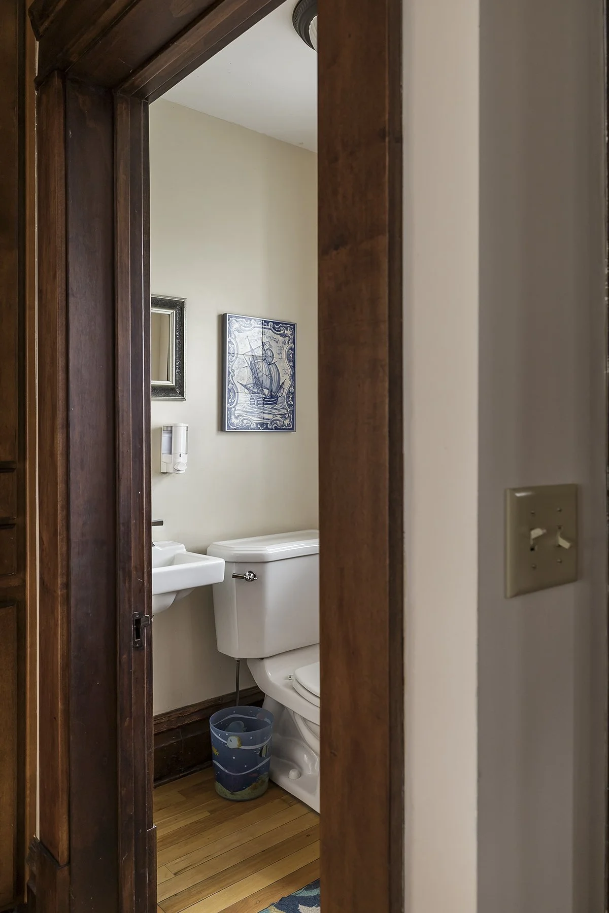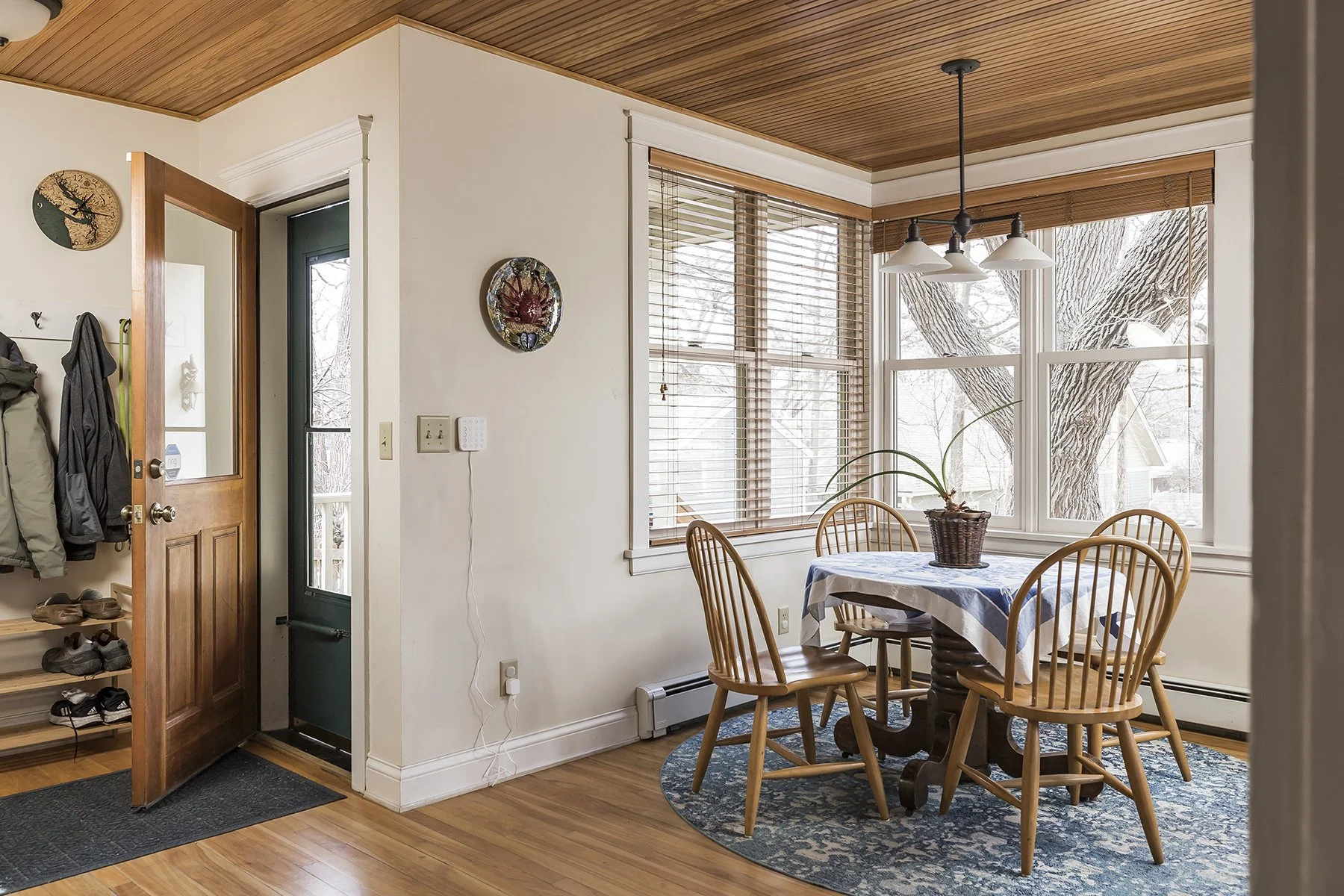 Enjoy the unique craftsmanship of original hardwood floors, a beamed ceiling, natural woodwork, divided light windows, a dining room built-in, and a cozy wood-burning fireplace.