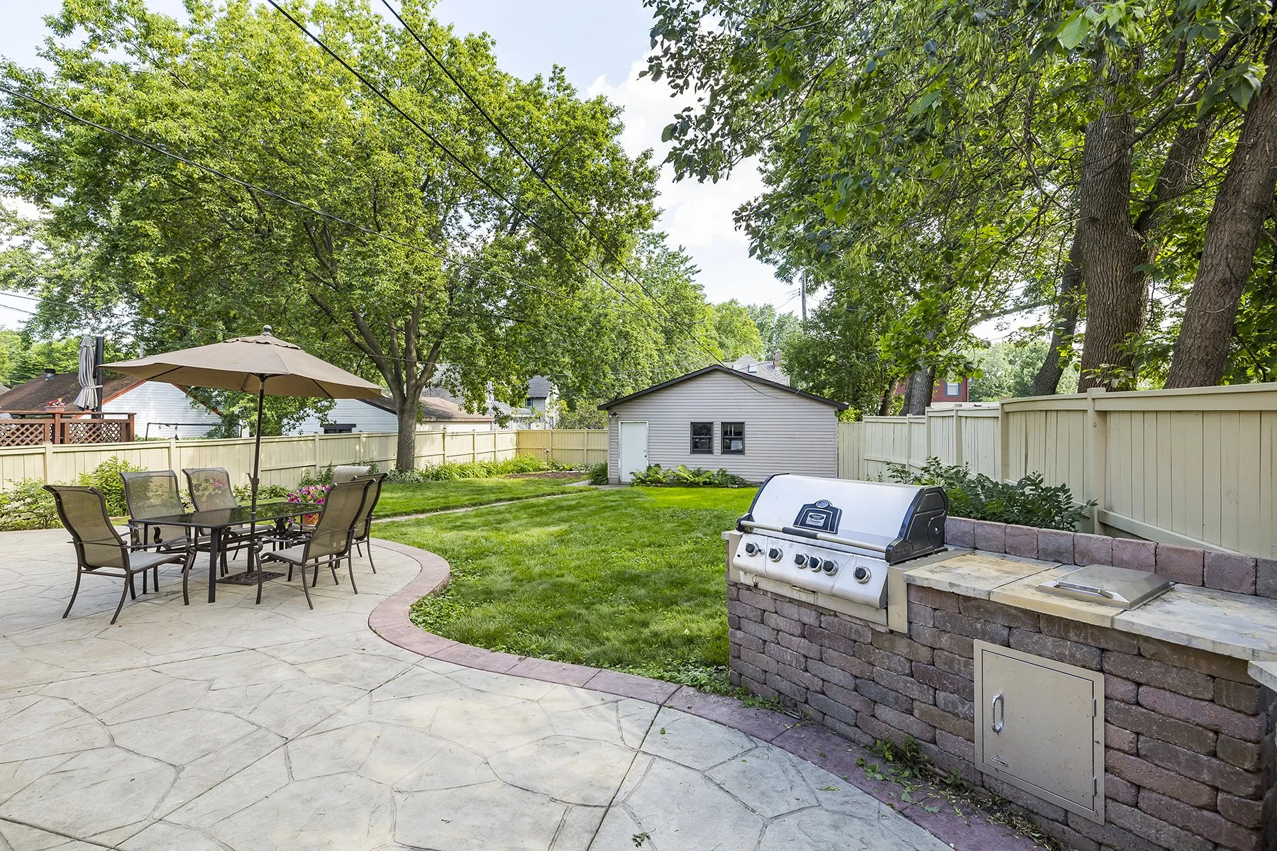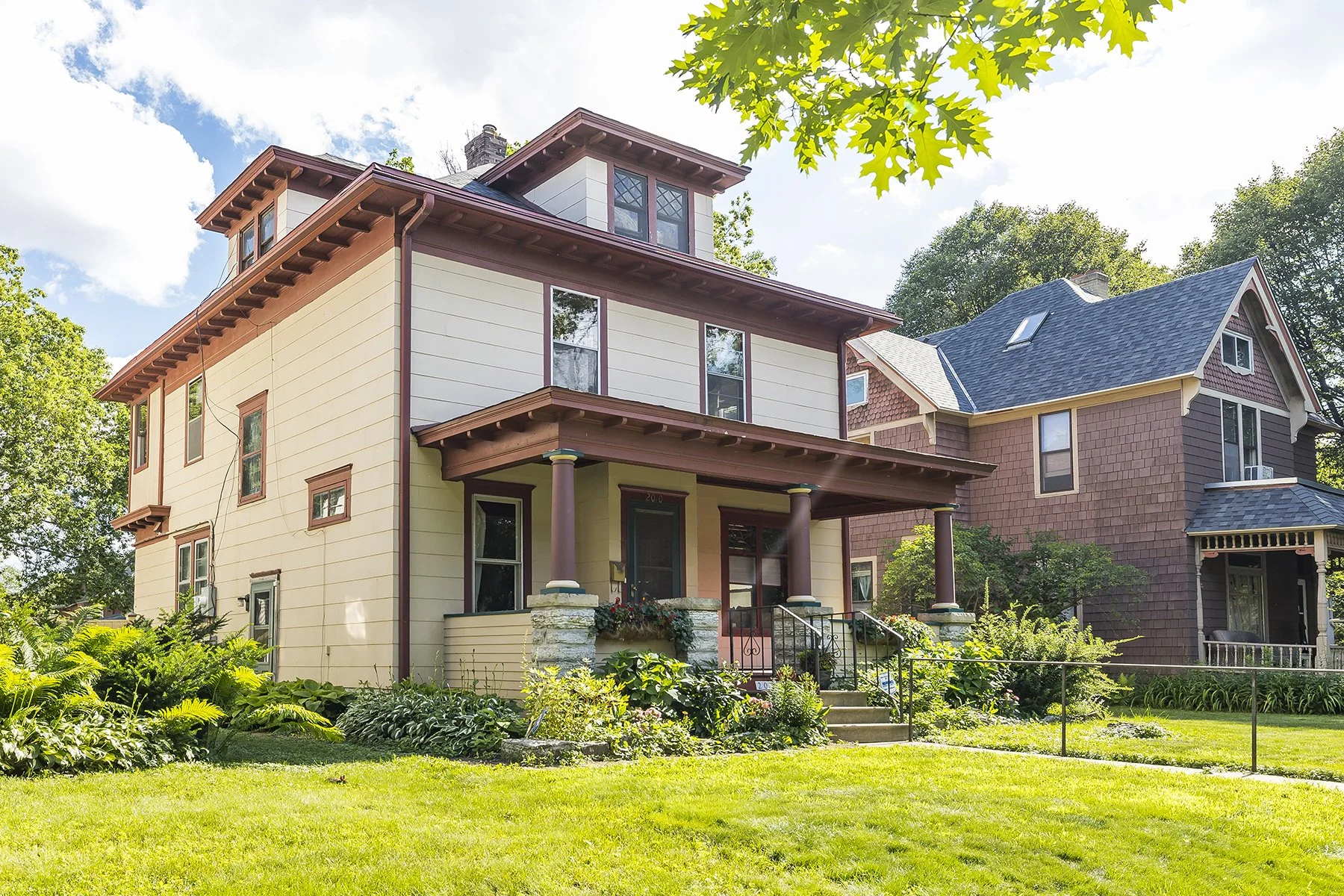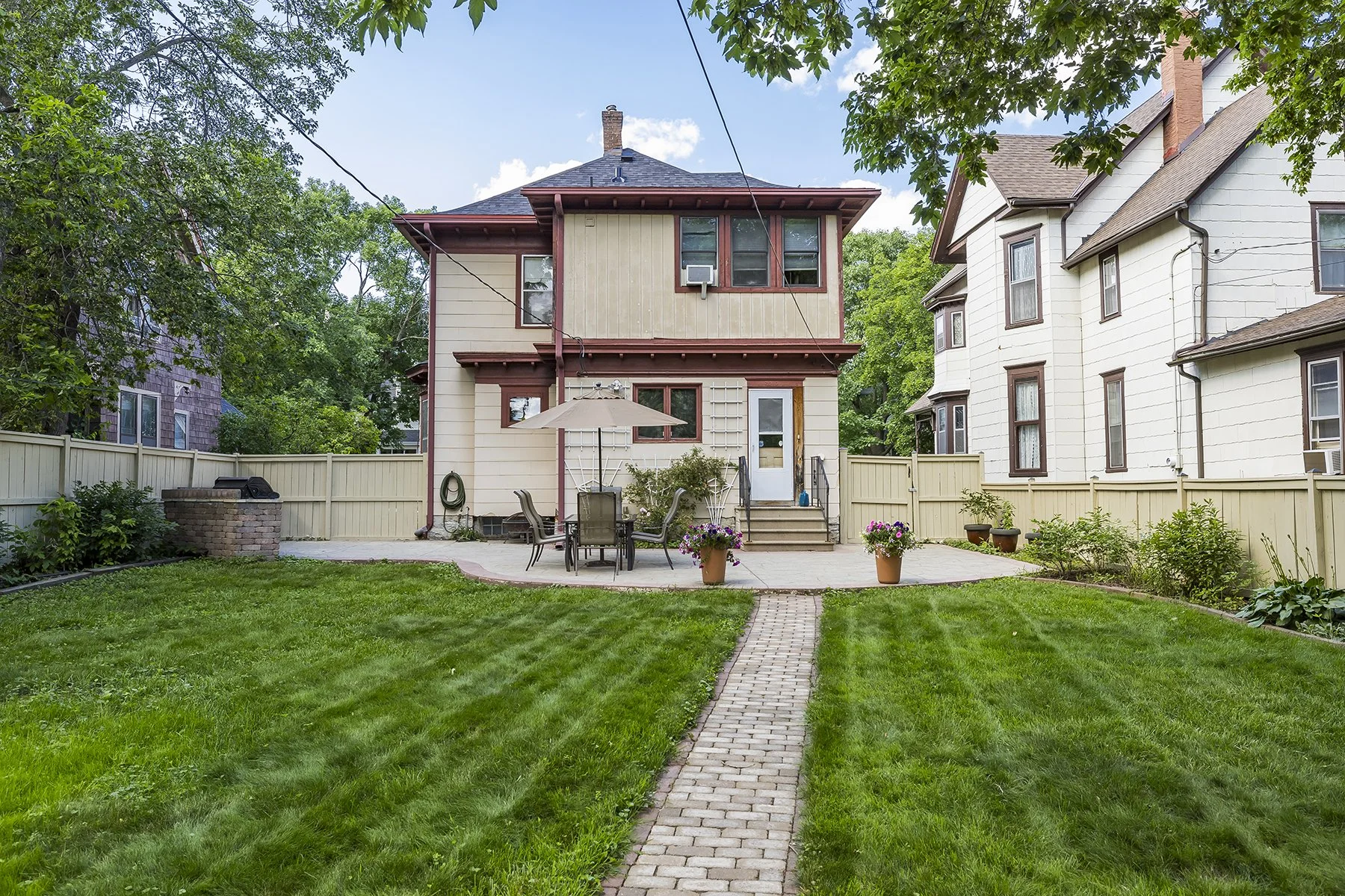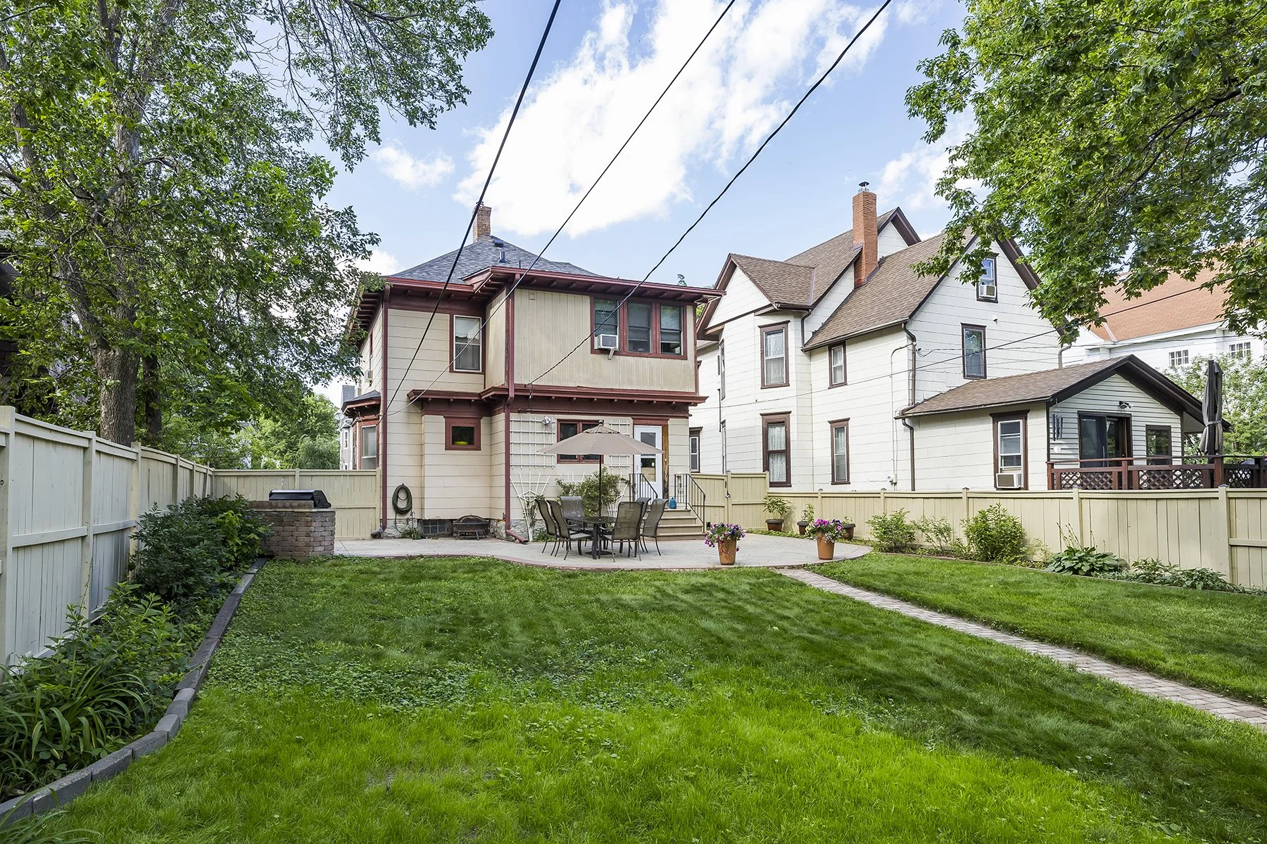 Built at the beginning of the 20th century this four bedroom home features stained glass windows, a built in buffet, an open stair case, hardwood floors, natural woodwork, large eat in kitchen, 4 bedrooms on one level, lower level office space with an egress window, 2 second floor bathrooms, basement family room and half bath. The huge fenced backyard features an outdoor kitchen with a stamped concrete patio. Front porch has been rebuilt and the home received a new roof this year. The second floor has a bedroom suite that could be primary or guest. Walk to Nellies, Marios and other shopping in the area. Easy access to either downtown and several universities.