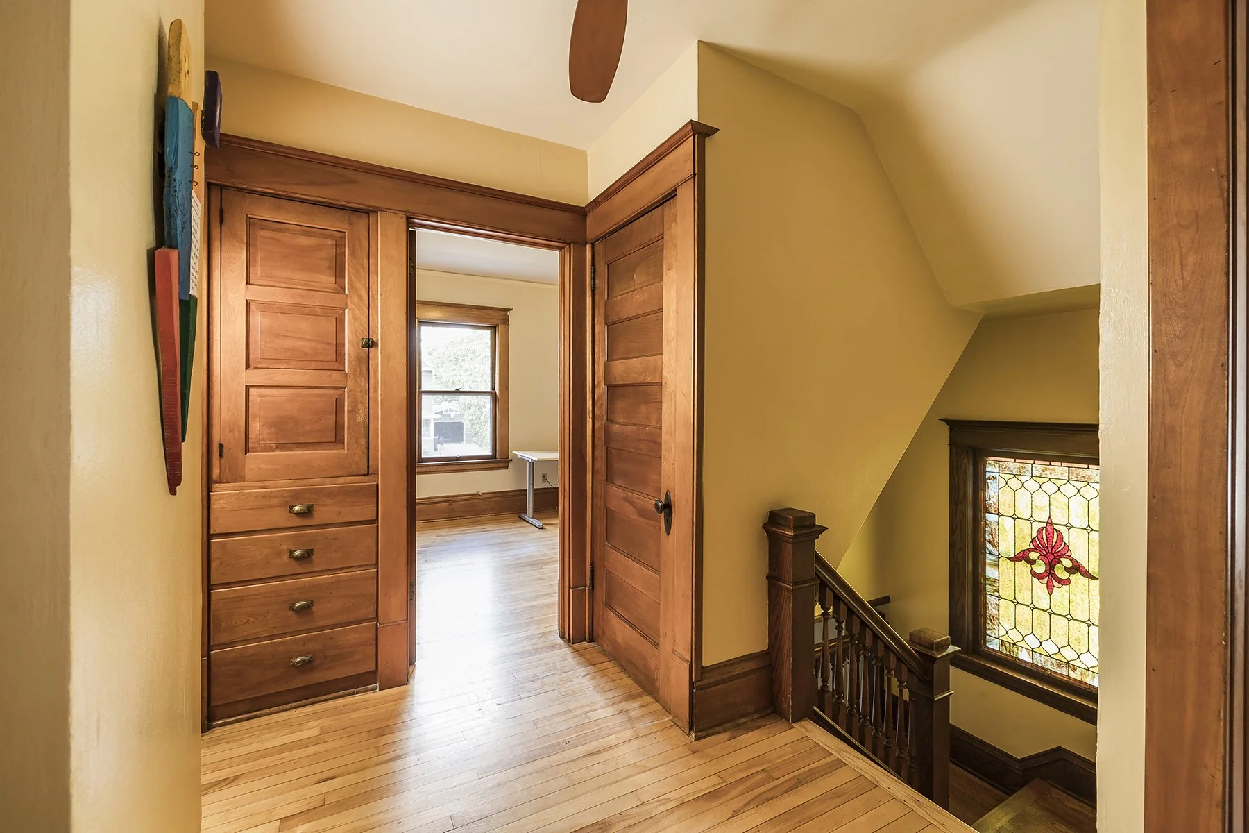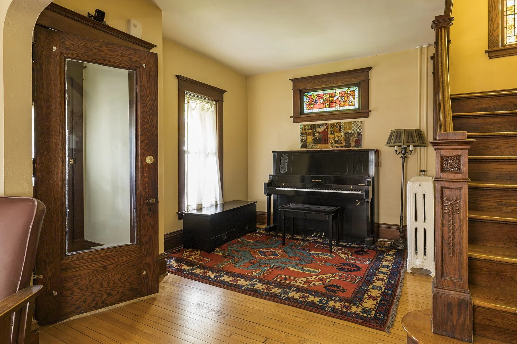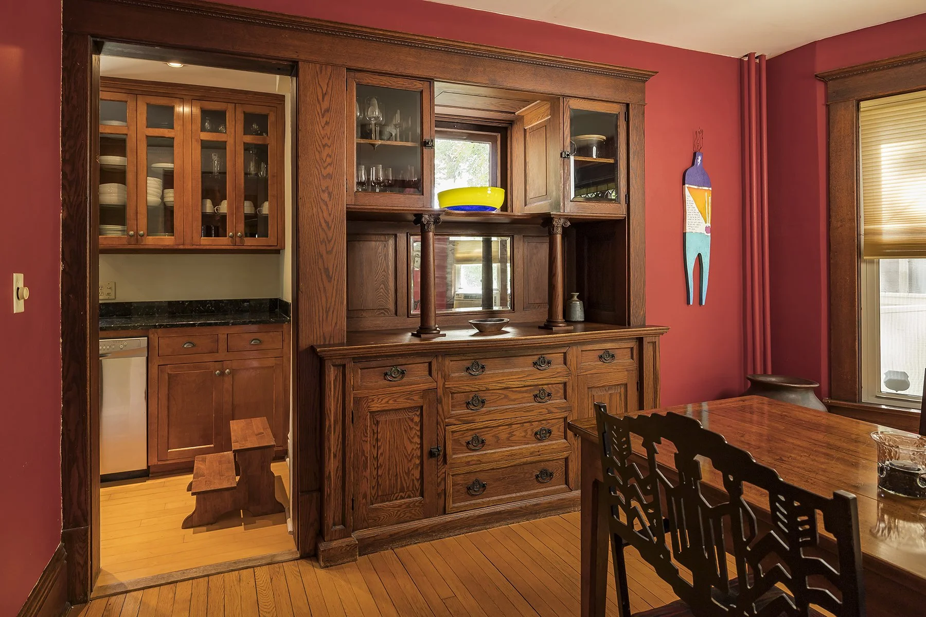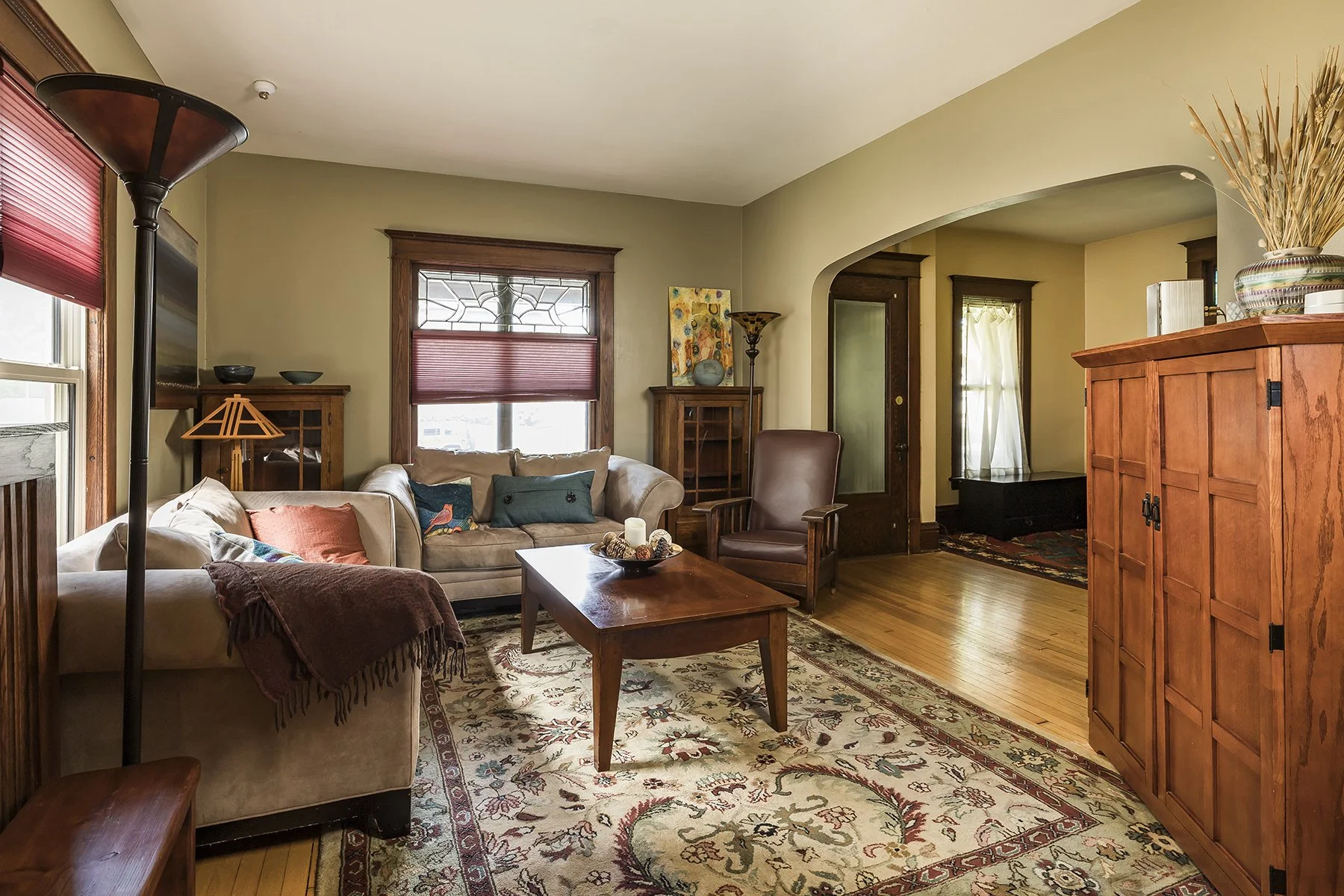 Built at the beginning of the 20th century this four bedroom home features stained glass windows, a built in buffet, an open stair case, hardwood floors, natural woodwork, large eat in kitchen, 4 bedrooms on one level, lower level office space with an egress window, 2 second floor bathrooms, basement family room and half bath. The huge fenced backyard features an outdoor kitchen with a stamped concrete patio. Front porch has been rebuilt and the home received a new roof this year. The second floor has a bedroom suite that could be primary or guest. Walk to Nellies, Marios and other shopping in the area. Easy access to either downtown and several universities.