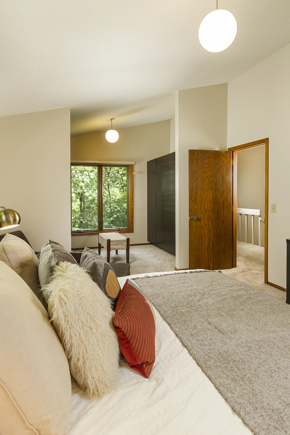 This early 70's Contemporary architecture not MCM is situated on a private almost 1 acre lot and located moments from downtown St. Paul, MSP airport and the new Eagan Central Park Commons. The home features a bright open formal living/dining area with soaring ceilings and amazing natural light. Three bedrooms on one level master bedroom suite, bedroom with a loft and much more! Check out the 3D Tour! Contact John Lynden at 651-246-5646 or john@lyndenrealty.com